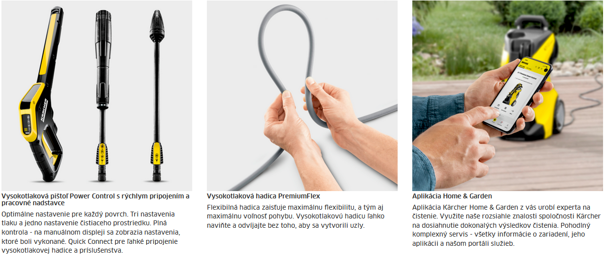 K 5 Power Control Flex Home & Brush Anniversary Edition pri príležitosti 90. výročia spoločnosti je limitovaný farebný variant so špeciálnym príslušenstvom. Vysokotlakový čistič je možné použiť na čistenie akéhokoľvek povrchu správnym tlakom. Aplikačný poradca integrovaný do aplikácie Kärcher Home & Garden pomáha používateľovi nájsť správny tlak praktickými tipmi pre každú čistiacu situáciu a čistiacu úlohu – pre dokonalé výsledky čistenia. Vysokotlakový čistič zaujme aj čistiacim systémom Kärcher Plug 'n' Clean pre jednoduchú výmenu čistiaceho prostriedku, vysokotlakovou hadicou PremiumFlex pre väčšie pohodlie, vysokokvalitnou hliníkovou teleskopickou rukoväťou pre jednoduchú prepravu, systémom Quick Connect pre úsporu času a námahy pri zacvakávaní vysokotlakovej hadice do zariadenia a pištole a spúšťovou pištoľou, ako aj parkovacou polohou pre zaistenie vždy ľahko dostupného príslušenstva. Zahŕňa súpravu Home & Brush s čističom povrchov T 5, 1 liter čističa kameňov a fasád, 1 liter univerzálneho čističa a umývaciu kefu WB 60.