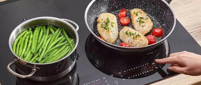 Nová veľká varná zóna, umiestnená v prednej časti dosky, je navrhnutá presne pre priemer 23 cm – najčastejšie používanú veľkosť hrncov a panvíc. Zabezpečuje rovnomerný ohrev bez studených miest a pohodlný prístup počas varenia.