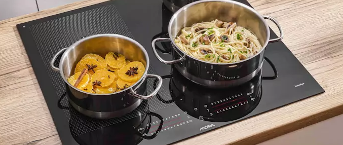 Indukčná vstavaná platňa MORA VDIT 66D C s praktickými zbrúsenými hranami, vďaka čomu ju môžete jednoducho zabudovať aj do roviny s pracovnou doskou, disponuje 4 indukčnými zónami, ktoré zahrievajú len dno nádoby a z dôvodu nízkej teploty povrchu varnej platne nedôjde k pripáleniu a platňa sa veľmi ľahko čistí. Indukčné varenie je nielen rýchle, úsporné, ale aj veľmi bezpečné. Varná platňa disponuje extra výkonom SuperBoost, ktorý zvyšuje intenzitu ohrievania, pre skrátenie času, potrebného na ohrev. S funkciou Timer je možné nastaviť časovač varenia až na 99 minút a varná platňa sa po uplynutí času automaticky vypne. Vďaka detskej poistke teraz nechať deti v kuchyni bez dozoru nebolo nikdy bezpečnejšie, pretože táto funkcia im bráni varnú platňu zapnúť.