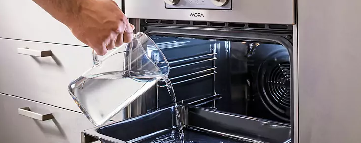 Pokiaľ po pečení zostalo v rúre silnejšie znečistenie, para s ním rýchlo zatočí. Stačí, keď do rozohriatej rúry vložíte hneď po príprave pokrmu plech s vodou a zapnete čistiaci program Eco Clean. Po 30 minútach sa nečistoty uvoľnia a akonáhle rúra vychladne, ľahko ich zotrite handričkou.