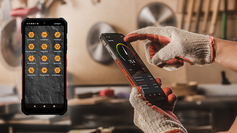 HAMMER Construction 2 Thermal 5G je telefón ako stvorený na prácu. Môžete ho ľahko ovládať v rukaviciach a všetky potrebné nástroje nájdete v aplikácii HAMMER Toolbox.