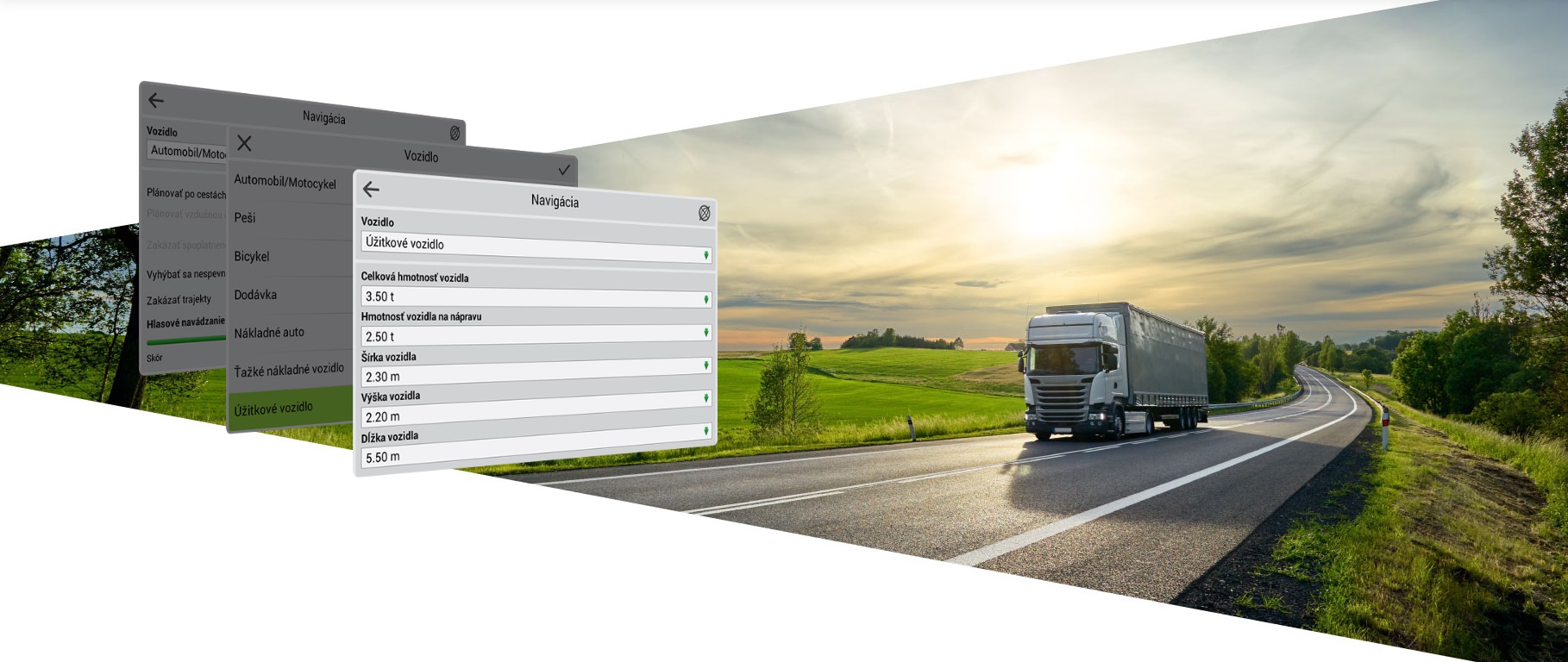 Program Navitel Navigator predinštalovaný v zariadení NAVITEL E501 ponúka rozšírenú sadu nastavení pre navigáciu nákladných vozidiel. V nastaveniach vyberte typ nákladnej dopravy alebo si vytvorte vlastné vozidlo pridaním jeho parametrov: dĺžka, šírka, výška, maximálna povolená a skutočná hmotnosť, zaťaženie náprav atď. a program zostaví trasy zohľadňujúce cestné obmedzenia pre tento typ dopravy, čo vám umožní voľne cestovať do cieľa.