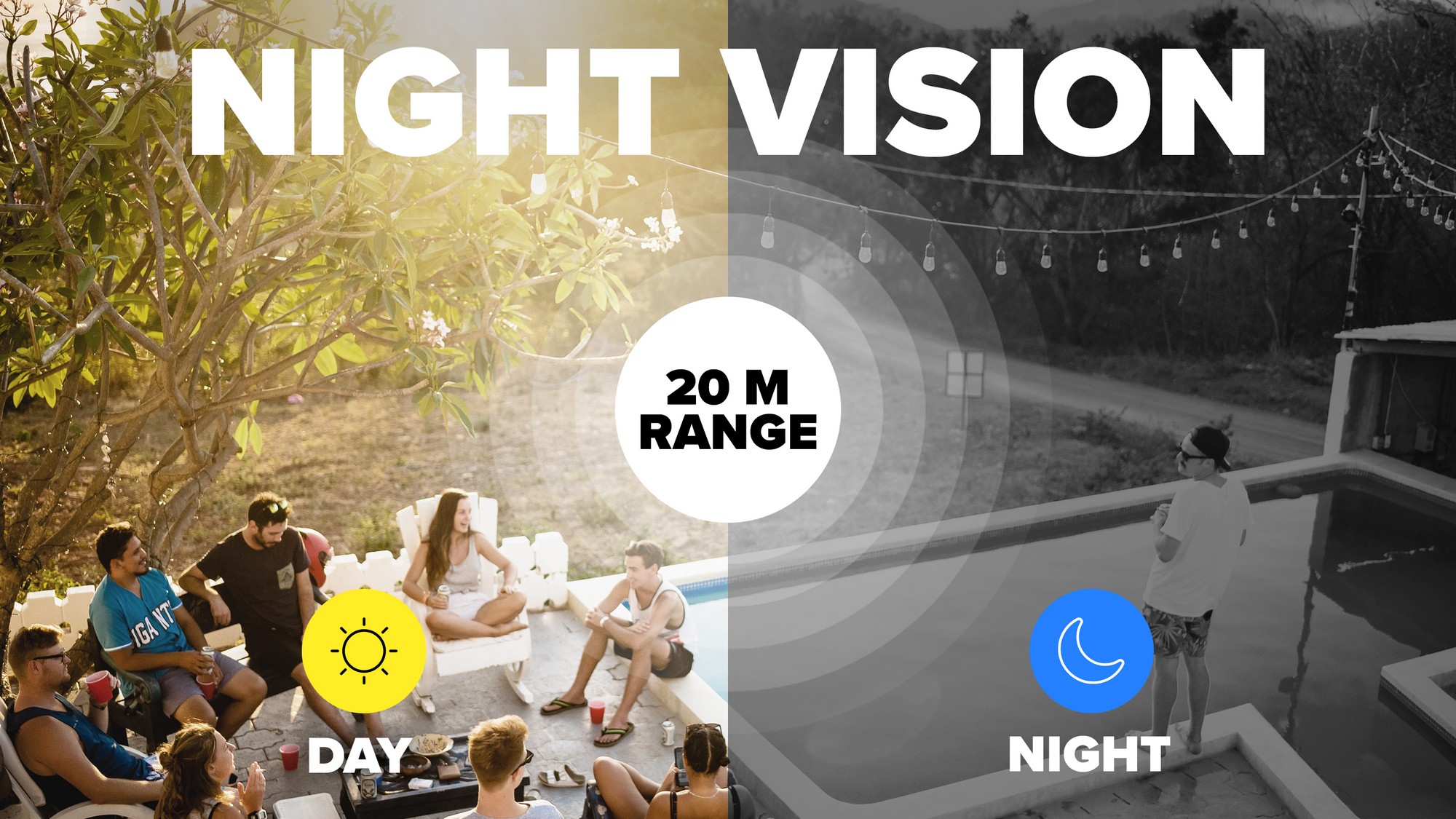 S vonkajšou bezpečnostnou kamerou Niceboy ION ste chránení nielen cez deň, ale aj v noci. Kamera je vybavená pokročilou technológiou nočného videnia s dosahom až 20 metrov, takže poskytne kvalitný obraz aj v úplnej tme.