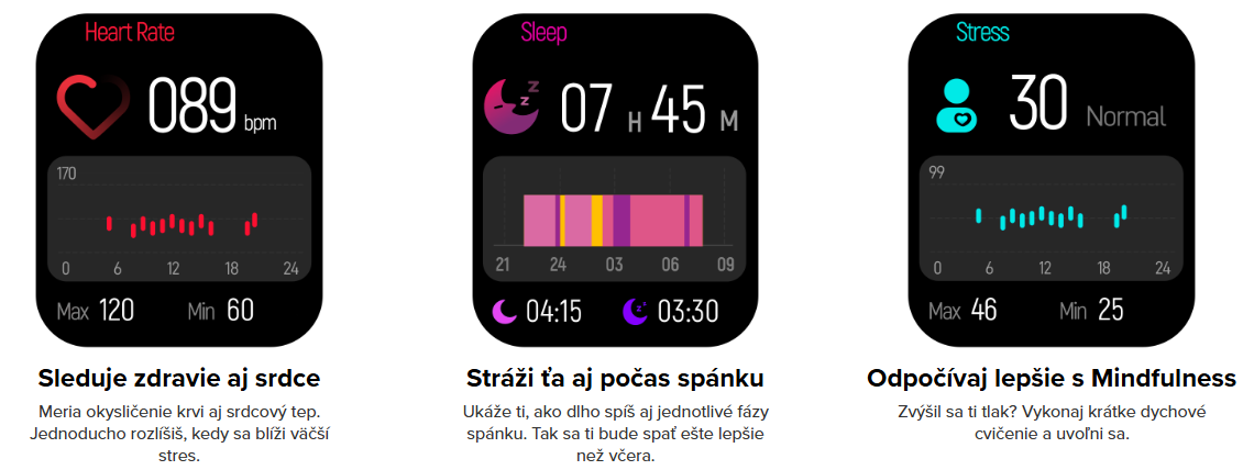 Tieto hodinky nie sú chytré len tak pre nič za nič. Sledujú tvoj pohyb počas dňa aj základné zdravotné metriky: zdravie srdca, teplotu a kvalitu spánku. Podľa dát spoznáš, kedy si dopriať viac pohybu, alebo naopak venovať deň oddychu.