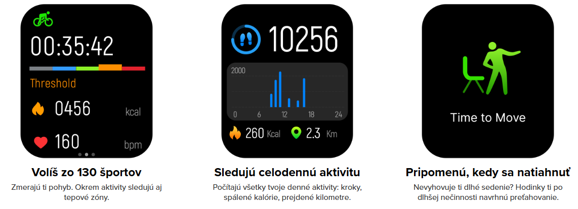 Vyber si jeden zo 130 športových režimov a poď cvičiť. Lez, behaj alebo tancuj – hodinky prispôsobia meranie konkrétnej aktivite. Tak získaš prehľad o tom, ako tvoje telo hospodári s energiou a či si v kalorickom deficite. Ak hľadáš motiváciu byť aktívnejší, tieto hodinky ti ju poskytnú.