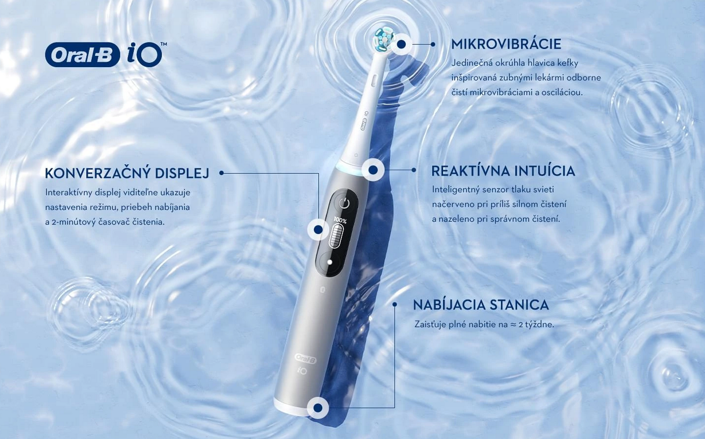 Elektrická zubná kefka iO s revolučnou magnetickou iO technológiou pre pocit profesionálneho a jemného čistenia zubov.