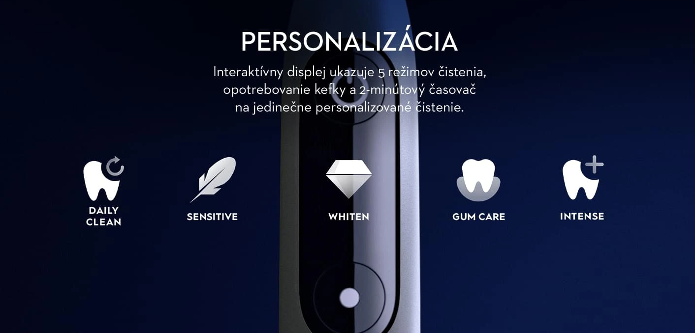 6 chytrých režimov čistenia na miestu: každodenné čistenie, jemný, starostlivosť o ďasná, intenzívne čistenie, bieliaci, super jemný.