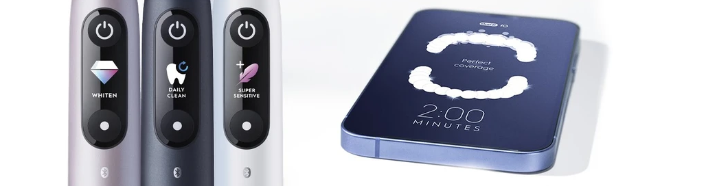 Úplne nová technológia iO sa nachádza na hranici sonickej a oscilačno-rotačnej technológie. Magnet v tele kefky vytvára oscilačno-rotačný pohyb s mikrovibráciami. Mikrovibrácie rozpohybujú hlavicu kefky, ktorá veľmi jemne, ale dôkladne odstráni povlak a iné nečistoty zo zubov aj z priestorov medzi nimi. Chod kefky je veľmi tichý a odozva vibrácií oveľa menšia než u predchádzajúcich modelov. Na interaktívnom farebnom displeji si môžete vybrať jeden zo siedmych režimov čistenia a skontrolujete si odporúčanú dobu čistenia vďaka dvojminútovému časovaču. V neposlednom rade zistíte stav nabitia batérie.