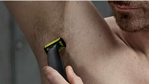 OneBlade neholí tak nakrátko ako tradičná žiletka, takže vám nepodráždi pokožku. Používajte OneBlade proti smeru rastu a ohoľte jednoducho fúzy a chlpy akejkoľvek dĺžky na tvári i tele. OneBlade je vybavený dvoma čepeľami - jednou na tvár a druhou na telo.