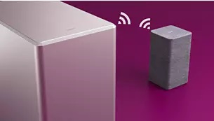 Nastavenie už nemôže byť jednoduchšie. Stačí pripojiť subwoofer k televízoru Philips prostredníctvom aplikácie Philips Sound alebo ponuky DTS Play-Fi v televízore.
