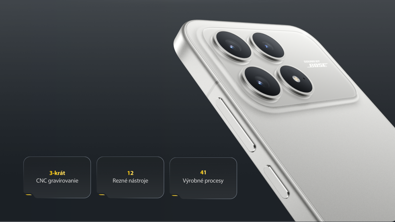 POCO F8 Pro využíva všestranný modul troch fotoaparátov na čele s hlavným 50MP snímačom s OIS a clonou f/1.88. Spolu s ním je vybavený aj praktickým 50MP telefoto objektívom s clonou f/2.2 a ultraširokouhlým fotoaparátom s clonou f/2.2.