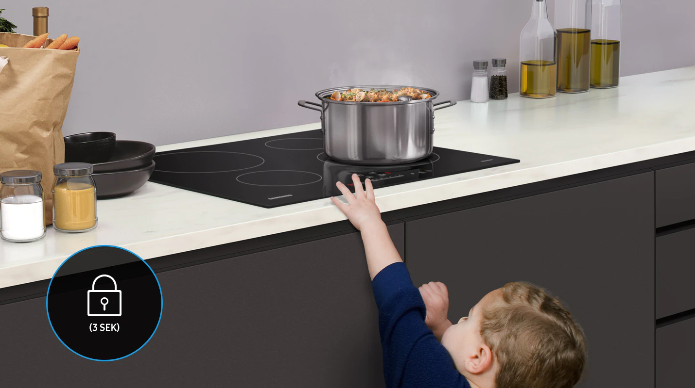 Detský zámok zabráni aktivovať indukčnú dosku aj tým najaktívnejším deťom. Jediným stlačením tlačidla môžete uzamknúť celý ovládací panel, a znemožniť tak jeho manipuláciu, či už cielenú alebo náhodnú. Minimalizujete tým riziko popálenia.