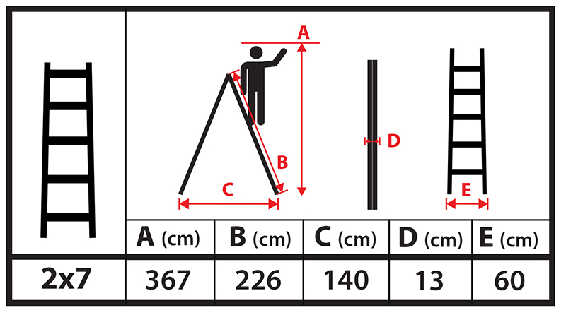 Dvojitý drevený rebrík Strend Pro so 7 priečkami sa vyznačuje pevnou a stabilnou konštrukciou, ktorá zaručuje bezpečnú prácu vo výške. Je vyrobený z impregnovaného borovicového dreva a obsahuje aj kovové pozinkované časti vysokej kvality. Oceľová reťaz zamedzuje rozovretiu rebríka. Výhodou je poistka pre bezpečnú a pohodlnú prepravu. Nosnosť je 150 kg. Vyrobené v EÚ.