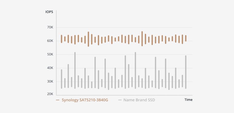 Disky Synology radu SAT5200 sú navrhnuté pre náročné prostredia, ako sú databázy pre online spracovanie transakcií (OLTP) a virtualizačné nasadenie, a poskytujú trvalo vysoký výkon.