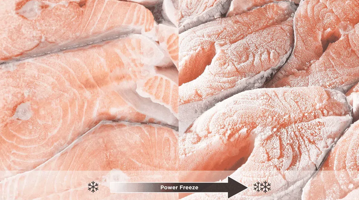 Funkcia "PowerFreeze" je inovatívna technologická novinka v mrazničkách, ktorá umožňuje rýchle a intenzívne zmrazovanie potravín. Po aktivácii tejto funkcie začne mraznička okamžite pracovať s maximálnym chladiacim výkonom a teplota vo vnútri výrazne klesne na -24 °C. To je užitočné najmä pri pridávaní veľkého množstva čerstvých potravín, keď je dôležité, aby potraviny dosiahli optimálnu teplotu zmrazenia čo najrýchlejšie, aby sa zachovala ich kvalita a chuť.