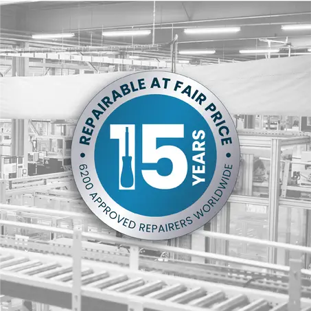 Produkt so zárukou opraviteľnosti po dobu 15 rokov, s nízkymi nákladmi a rýchlym dodaním zo 6200 schválených servisných stredísk po celom svete v rámci nášho úsilia prispievať k ochrane životného prostredia a pomáhať znižovať množstvo odpadu.