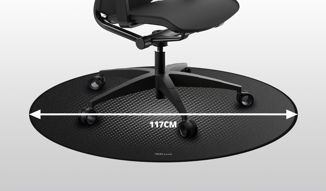 Či už pracujete z domu alebo hráte hry, svoju kancelársku alebo hernú stoličku pravdepodobne neustále presúvate. S Trust Mika chránite svoju podlahu pred poškriabaním a každodenným opotrebovaním, ktoré spôsobujú kolesá vašej stoličky. Táto podlahová rohož odolná voči opotrebovaniu je vyrobená z odolného polyesteru a má veľkú plochu 117 cm. Viac než dosť miesta na pohyb.