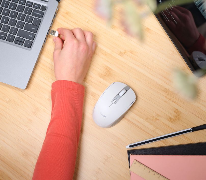 Popis produktu Trust Ozaa Compact Multi-Device Wireless Mouse Rechargeable - White