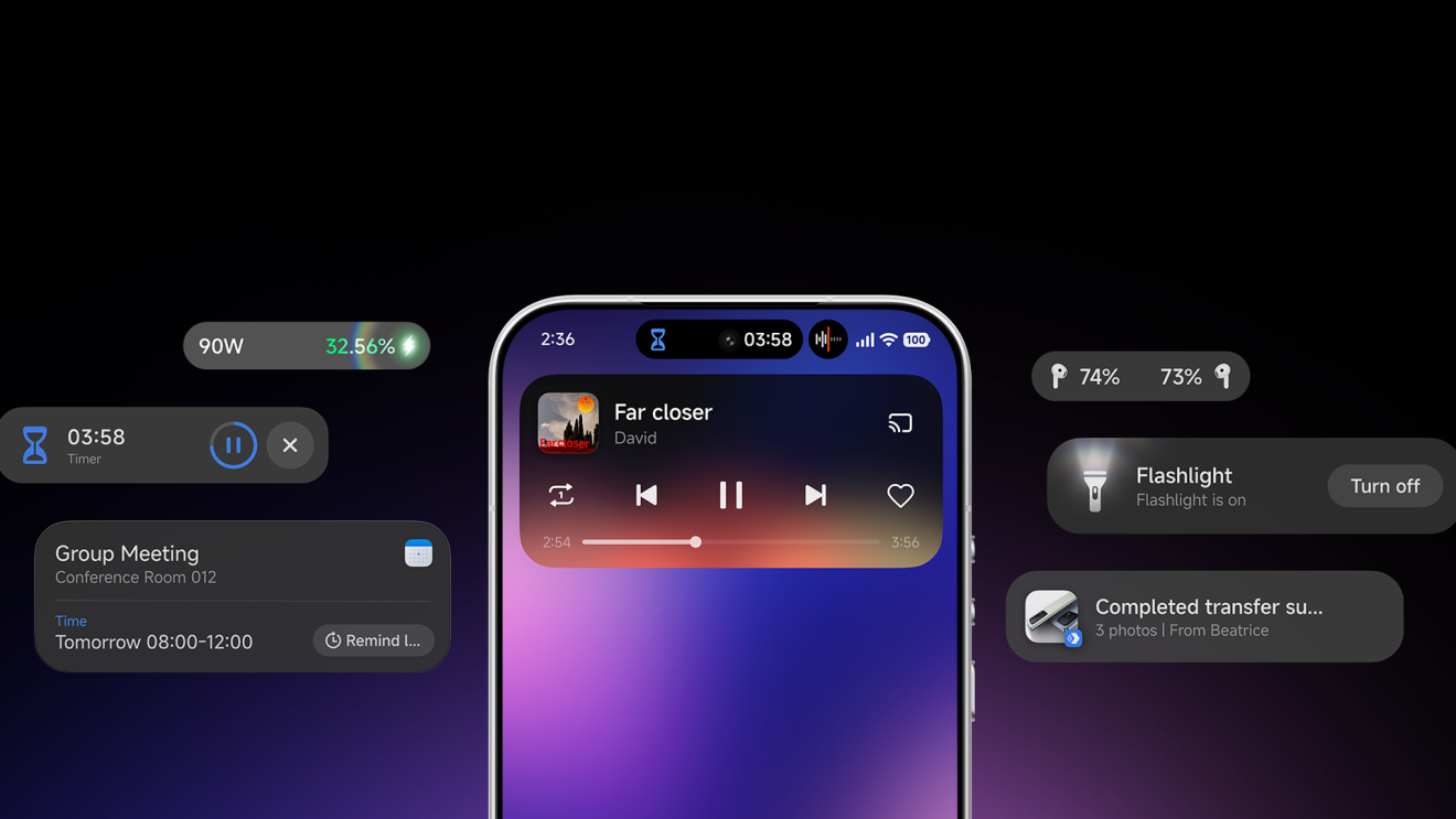 * Xiaomi HyperIsland je momentálne k dispozícii vo vybraných aplikáciách. Dostupnosť konkrétnych funkcií a služieb sa môže líšiť v závislosti od verzie softvéru, aplikácií, regiónu a modelu zariadenia.