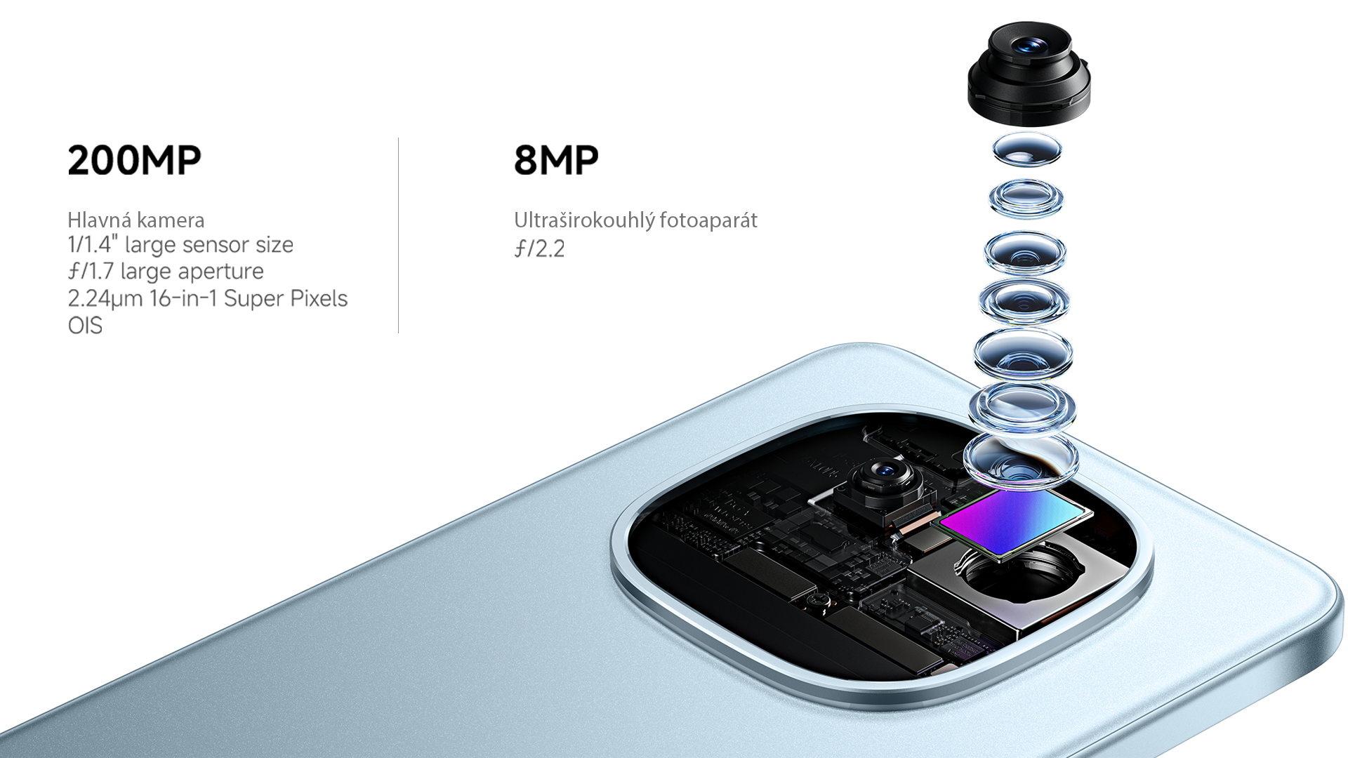 | Hlavný fotoaparát: | 200 + 8 Mpx |