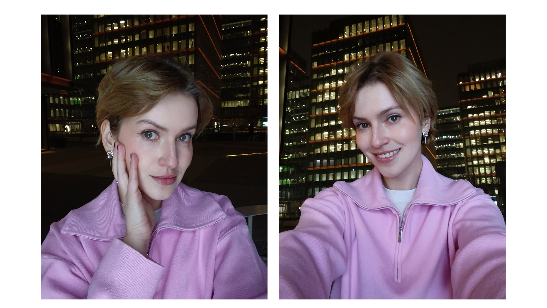 Ostrejšie portréty vďaka AI. Predná kamera s vysokým rozlíšením a širokou clonou spolu s algoritmami umelej inteligencie redukuje šum a presne obnovuje textúru pokožky a prirodzené tóny, vďaka čomu budú nočné zábery ešte pôsobivejšie.