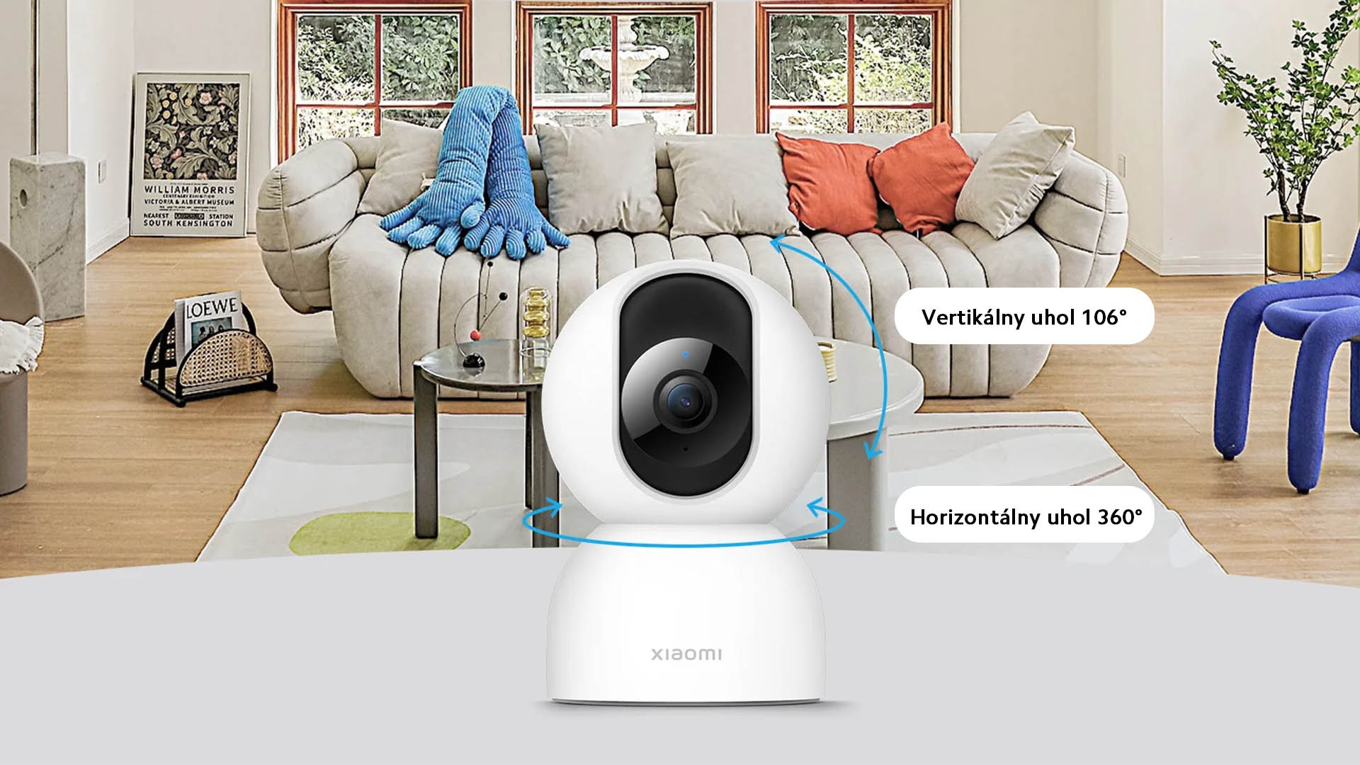 Kamera je dodávaná s rotačnou základňou a je možné ju umiestniť na stôl, okno, strop alebo stenu.