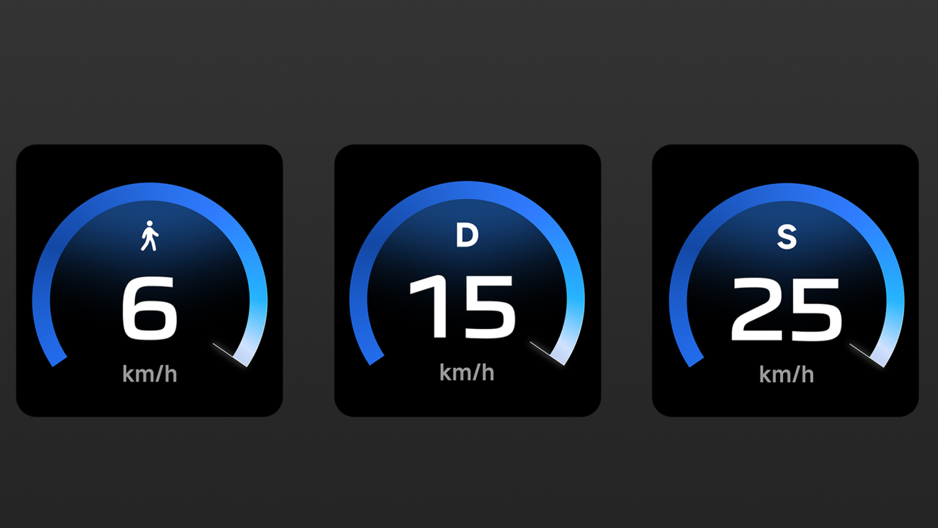 Tri voliteľné režimy vám umožnia mať jazdu plne pod kontrolou v každej situácii. Či už hľadáte komfortnú rýchlosť pre jazdu v meste, klasiku pre bežné dochádzanie alebo trochu adrenalínový zážitok. Jednoducho si zvoľte ten správny režim podľa toho, kde práve jazdíte.