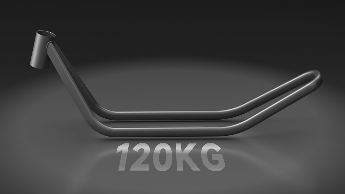 Rám z mimoriadne pevnej uhlíkovej ocele zvládne zaťaženie až do 120 kg.