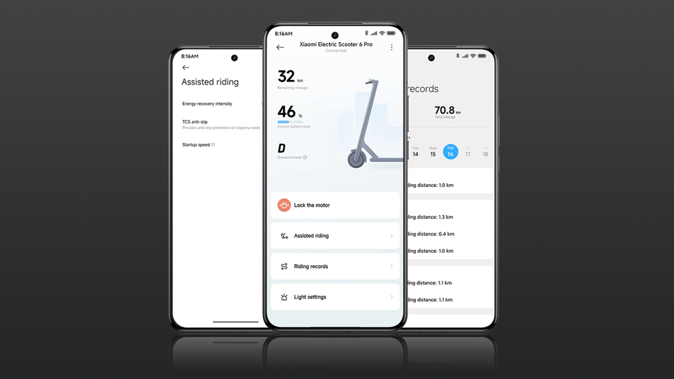 Xiaomi Electric Scooter 6 Pro využíva kinetickú energiu pri brzdení a jazde na voľnobeh a premieňa ju na znovu-využiteľnú elektrickú energiu, čím predlžuje váš dojazd na jedno nabitie. Ak dávate prednosť plynulejšej jazde na voľnobeh, môžete si systém rekuperácie jednoducho vypnúť v aplikácii Xiaomi Home.