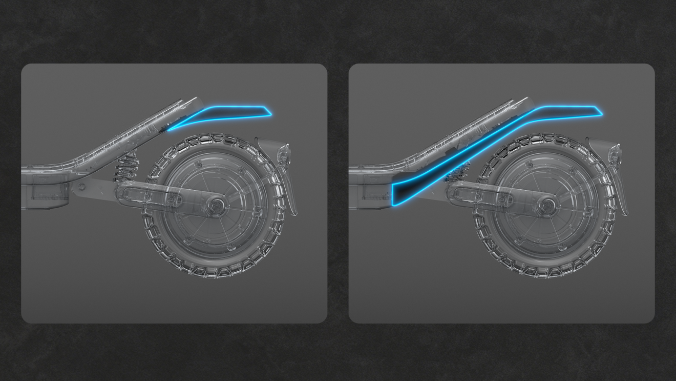 Xiaomi Electric Scooter 6 Pro prichádza s vysokým (143mm) terénnym podvozkom, ktorý znižuje riziko poškodenia spodnej časti kolbežky a zabezpečuje lepšiu priechodnosť terénom. Užite si jazdu mimo asfaltu a objavujte nové trasy.