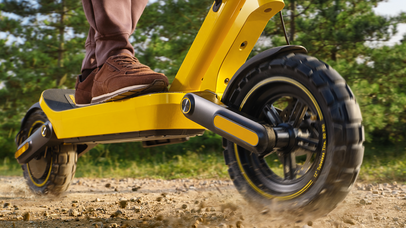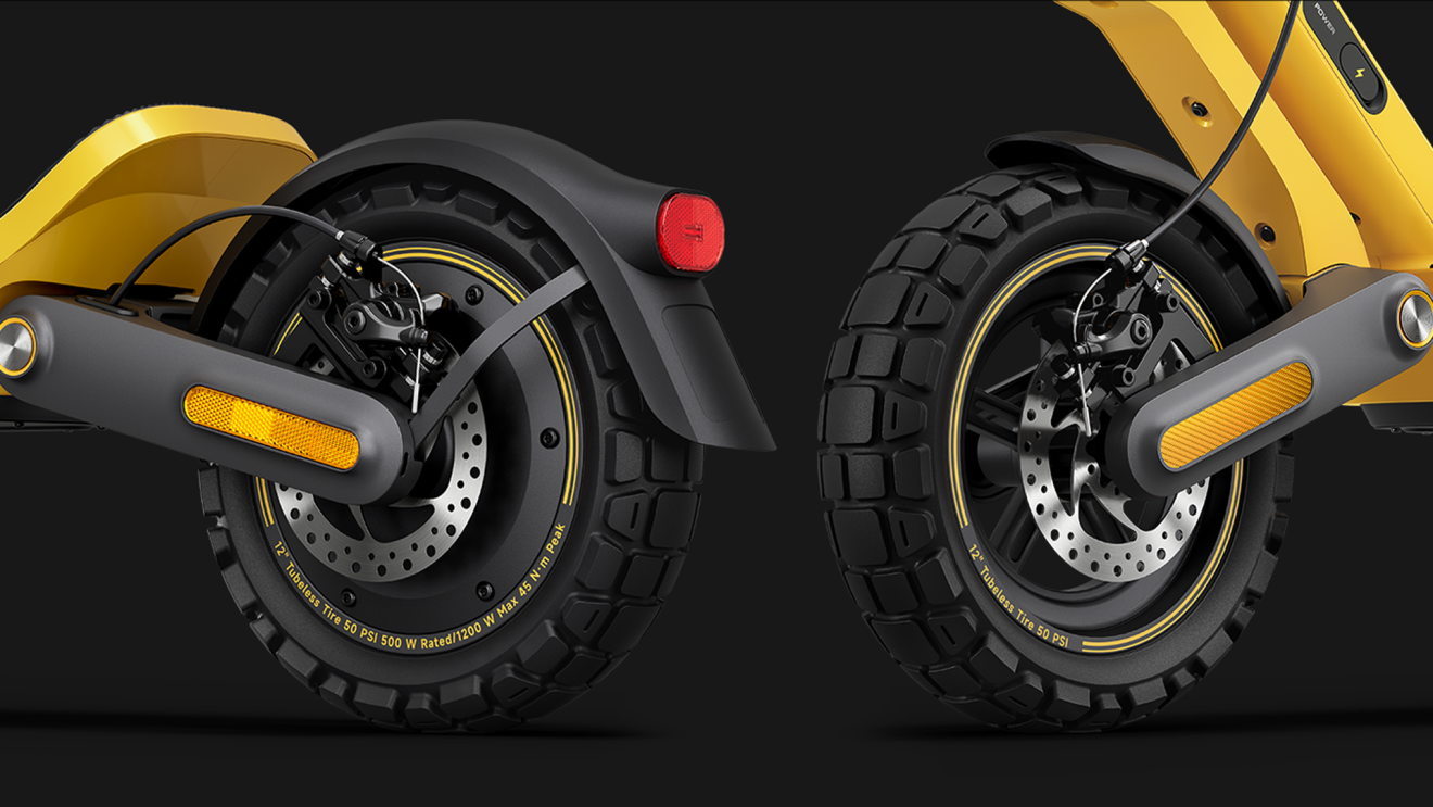 Kolobežka je vybavená širokými 12″ terénnymi pneumatikami s nízkym valivým odporom, vďaka čomu zaisťujú stabilitu a plynulú jazdu aj v náročnom teréne. Bez problém si poradia s nerovnosťami v mestských podmienkach, či už to sú výmole, drsný asfalt, alebo kamenná dlažba. Vďaka terénnemu dezénu vás však nezastaví ani štrk, alebo poľná cesta.