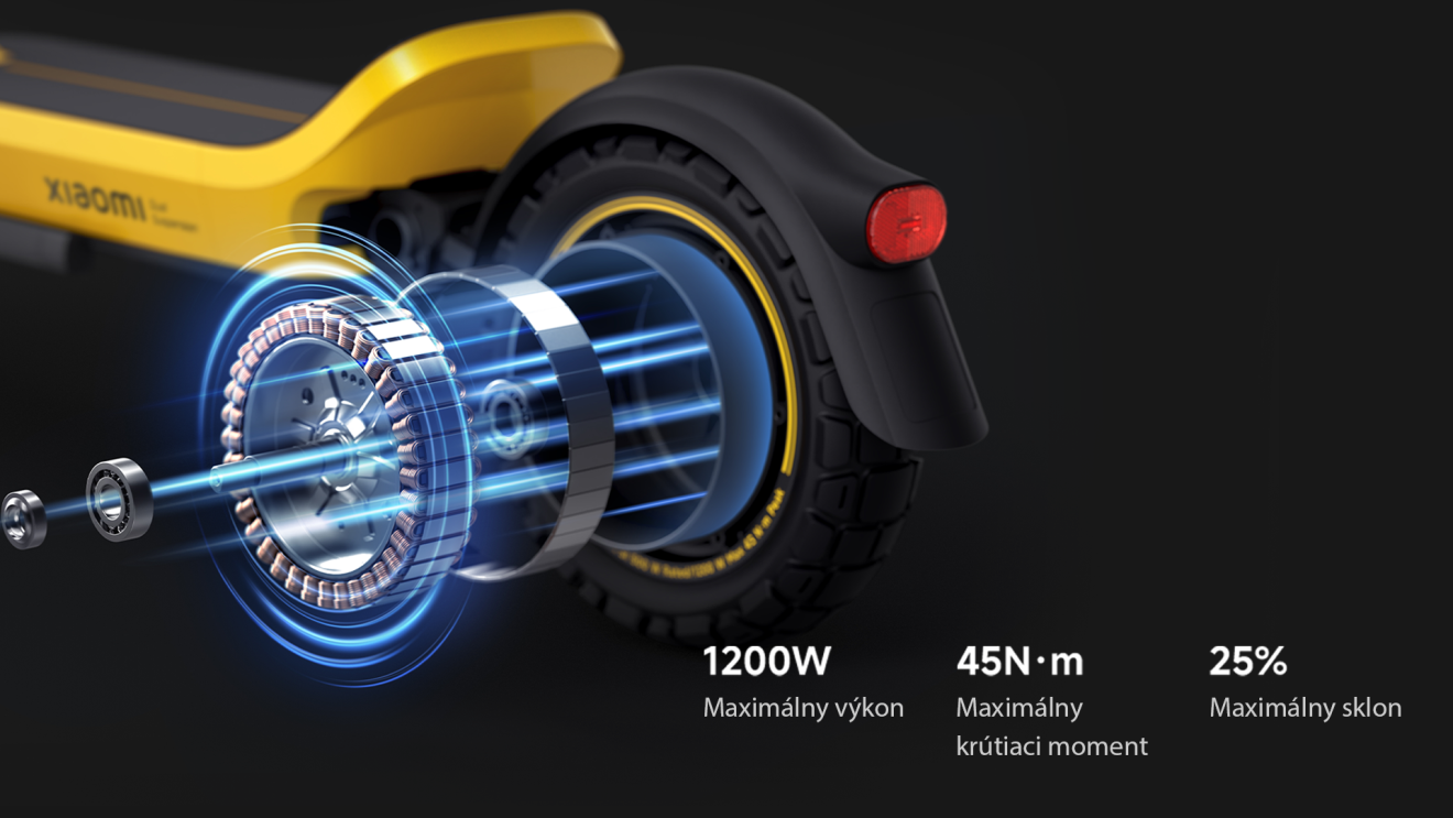 Kolobežku sme vybavili špičkovým motorom s výkonom až 1200W vďaka ktorému si vychutnáte skutočne športový zážitok z jazdy. Vďaka vysokému krútiacemu momentu s ťahom až 45N·m vás doslova vystrelí na maximálnu rýchlosť len za 2.4 sekundy.